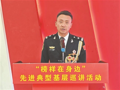 甘孜縣公安局下雄派出所所長(zhǎng)、洛戈梁子警務(wù)站負(fù)責(zé)人劉鵬(“四川好人”)在理塘縣開展“榜樣在身邊”巡講。