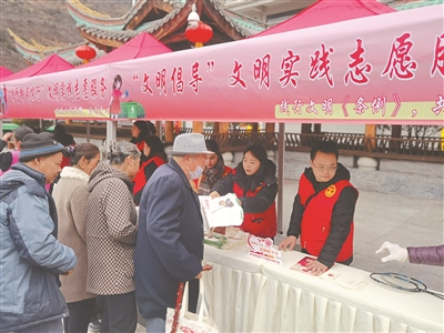 3月5日,瀘定縣新時(shí)代文明實(shí)踐中心文明倡導(dǎo)志愿服務(wù)隊(duì)在瀘定橋廣場(chǎng)開展《甘孜州文明行為促進(jìn)條例》宣傳。