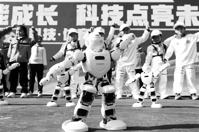11月25日,四川省瀘州市納溪中學(xué)附屬東升學(xué)校開展科技進(jìn)校園科普活動(dòng)。學(xué)生們通過和機(jī)器人互動(dòng)、觀看機(jī)器狗表演、體驗(yàn)趣味科學(xué)實(shí)驗(yàn)等活動(dòng),感受科技的魅力,激發(fā)科學(xué)夢(mèng)想。圖為孩子們跟著機(jī)器人跳舞。