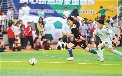 秋季學(xué)期以來,“班超”作為貴州省黔東南苗族侗族自治州從江縣中小學(xué)創(chuàng)新推出的校園足球項目,已成為推動體教融合的重要載體。該項目在潛移默化中培養(yǎng)了學(xué)生的團(tuán)隊意識和拼搏精神。圖為近日,從江縣城關(guān)第四小學(xué)“班超”足球比賽場景。盧忠南 攝