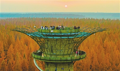 近期,江蘇省鹽城市東臺黃海森林公園萬畝水杉林迎來最佳觀賞期,成為冬季生態(tài)休閑旅游的網(wǎng)紅打卡地,吸引眾多游客前來游玩。圖為12月7日,游客在東臺黃海森林公園游玩。計(jì)海新 攝