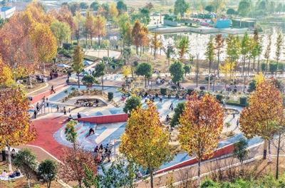近年來,湖南省永州市道縣提質(zhì)改造城市綠地,因地制宜建設(shè)“口袋公園”,打造15分鐘生態(tài)休閑圈,生態(tài)環(huán)境明顯改善。圖為12月6日,道縣紹基公園冬景如畫,居民們在此休閑游玩,樂享冬日暖陽。蔣克青 攝