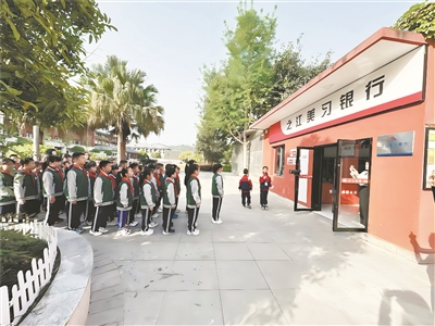 在四川省南充市嘉陵區(qū)之江小學(xué),學(xué)生可通過(guò)優(yōu)異表現(xiàn)獲得“美習(xí)幣”,在“之江美習(xí)銀行”兌換獎(jiǎng)勵(lì)。圖為其他小學(xué)組織學(xué)生前來(lái)參觀(guān)。(受訪(fǎng)者供圖)