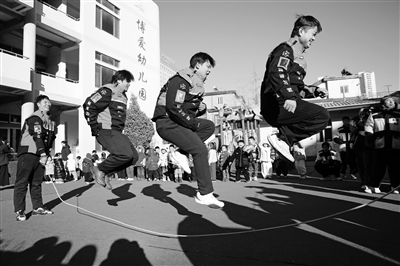 12月25日,江蘇省連云港市連云區(qū)墟溝街道東園社區(qū)開展“活力‘新’生 運(yùn)動(dòng)同行”新就業(yè)群體元旦迎新冬季趣味運(yùn)動(dòng)會(huì)。運(yùn)動(dòng)會(huì)設(shè)置拔河、集體跳繩、企鵝漫步、袋鼠跳等比賽項(xiàng)目。來自美團(tuán)、京東、順豐等企業(yè)的快遞員、外賣騎手踴躍組隊(duì)參賽,在輕松歡樂的比拼中奮勇爭先、舒展身心。圖為新就業(yè)群體成員參與集體跳繩趣味比賽。