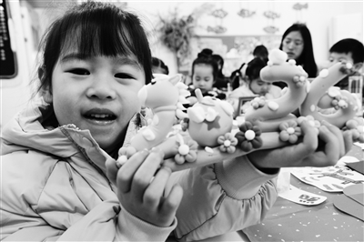 12月29日,江蘇省鎮(zhèn)江市解放路幼兒園聯(lián)合江蘇大學(xué)志愿者開展“”活動(dòng),指導(dǎo)小朋友制作、描畫手工作品,感受中華優(yōu)秀傳統(tǒng)文化的魅力,喜迎新年的到來。圖為小朋友展示迎新年主題的手工作品。石玉成 攝