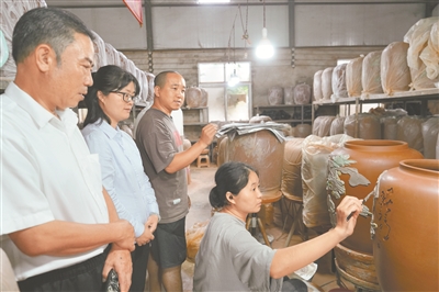 農(nóng)行建水縣支行客戶經(jīng)理深入紫陶作坊調(diào)研。王瑞 攝