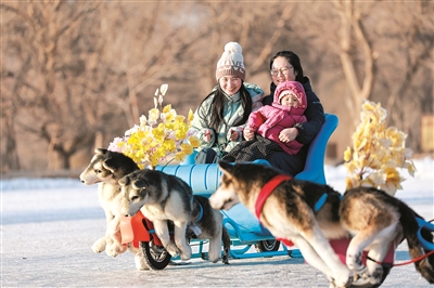 1月3日,在甘肅省酒泉市金塔沙漠胡楊林景區(qū)冰雪嘉年華樂園,游客在體驗(yàn)雪橇項(xiàng)目,盡享冰雪運(yùn)動(dòng)的樂趣。 曹紅祖 攝