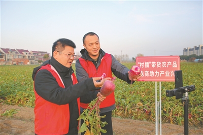 “我們磨頭鎮(zhèn)丁冒村金旺農(nóng)場(chǎng)的蘿卜,香脆可口,一口咬下去根本停不下來(lái)。”1月6日上午,江蘇如皋磨頭鎮(zhèn)丁冒村打造的讀蔬館直播基地里,如皋市新時(shí)代文明實(shí)踐隊(duì)的“村播”手捧沾著泥土的鮮蘿卜,通過(guò)網(wǎng)絡(luò)直播向觀眾熱情推介。