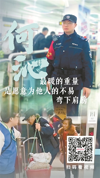 1月6日上午11點(diǎn),四川成都地鐵18號(hào)線火車南站地鐵站,戴著眼鏡的年輕安保人員何沁從乘客阿姨的肩頭接過(guò)沉甸甸的扁擔(dān),小心翼翼地挑著擔(dān)子,一路將阿姨送至7號(hào)線換乘站臺(tái)。扁擔(dān)兩頭,兩個(gè)裝滿花生和鵝蛋的籃子搖搖晃晃。瘦弱的他弓著腰、抿著嘴,連眼睛都在用力的生疏模樣,感動(dòng)了無(wú)數(shù)網(wǎng)友。