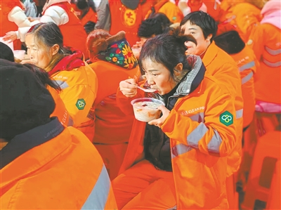 環(huán)衛(wèi)工人喝上暖心臘八粥