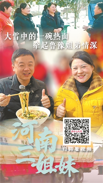 “我又回來看你們啦!”1月26日,山東省德州市夏津縣的80后貨車司機(jī)王玉志,載著家鄉(xiāng)特產(chǎn)駛?cè)牒幽夏详柲险倏h皇后鄉(xiāng)蘇灣村。這一次,他專程奔赴這片曾溫暖過他的土地,只為當(dāng)面感謝大雪天里為他煮了一碗熱面的河南三姐妹。