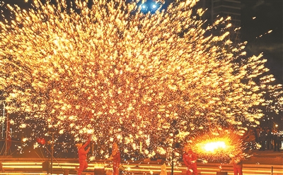 圖3:洛陽(yáng)非遺融合傳統(tǒng)民俗展演活動(dòng)上的打鐵花表演。