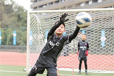 重慶各地的學(xué)生來到運(yùn)動館、戶外運(yùn)動場參加各類體育項(xiàng)目。圖為寒假中,沙坪壩區(qū)融匯沙坪壩小學(xué)的學(xué)生參加足球訓(xùn)練。孫凱芳 攝