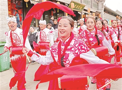 為迎接元宵佳節(jié),位于山西省太原市晉源區(qū)的太原古縣城開展系列節(jié)慶活動(dòng)。據(jù)了解,該景區(qū)推出“賣貨郎”“旱船”等非遺巡演、《祥鳳飛天》威亞表演、“唐潮F4”對(duì)詩互動(dòng)等特色活動(dòng),搭配NPC巡游、“福祿壽喜財(cái)”五??扉W等互動(dòng)環(huán)節(jié),讓市民和游客度過一個(gè)有溫度、有文化的元宵佳節(jié)。圖為活動(dòng)現(xiàn)場。曹建雄 攝