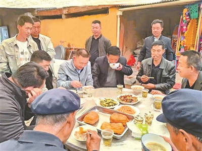 一人一碗燴菜、饅頭按需取用,沒有大擺宴席、不見鋪張浪費……近日,在甘肅省定西市岷縣秦許鄉(xiāng)泥地族村一戶辦理喪事的村民家中,前來奔喪的賓客們圍桌而坐,一人一碗燴菜,一邊吃一邊嘮嗑。在如今的秦許鄉(xiāng),以“一碗燴菜辦喪事”已蔚然成風(fēng)。