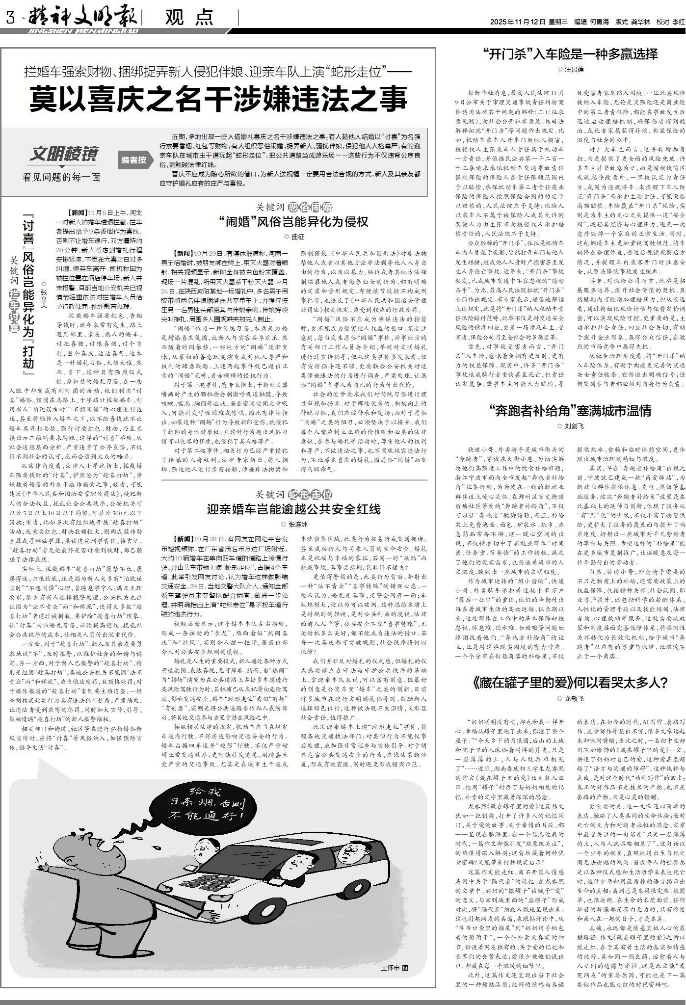 今日看點 莫以喜慶之名干涉嫌違法之事